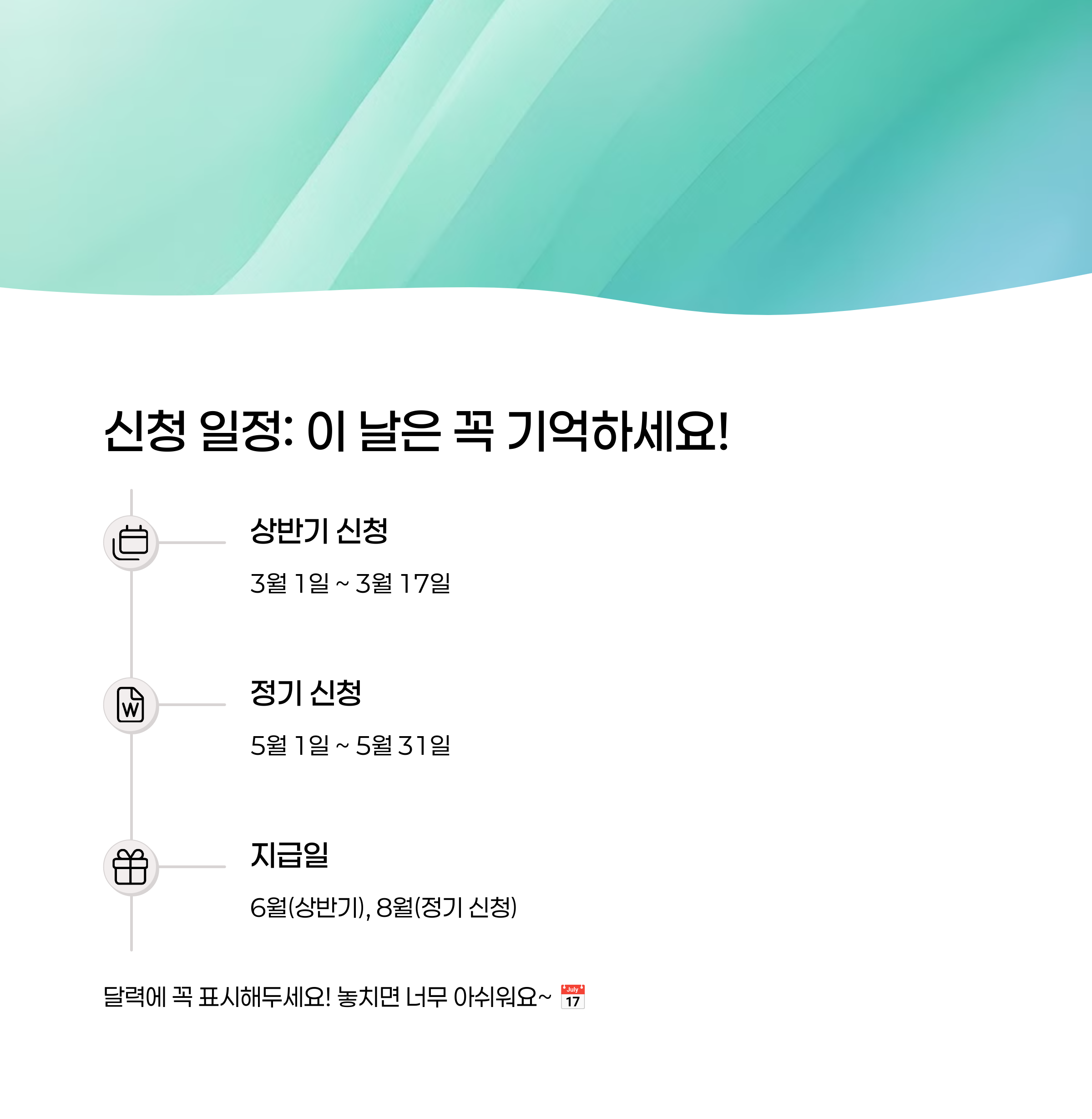 5월 신청 기간을 놓치면 받을 수 없거나 금액이 줄어들 수 있으니, 반드시 달력에 표시하고 미리 알림 설정해두는 걸 추천해요! 📅